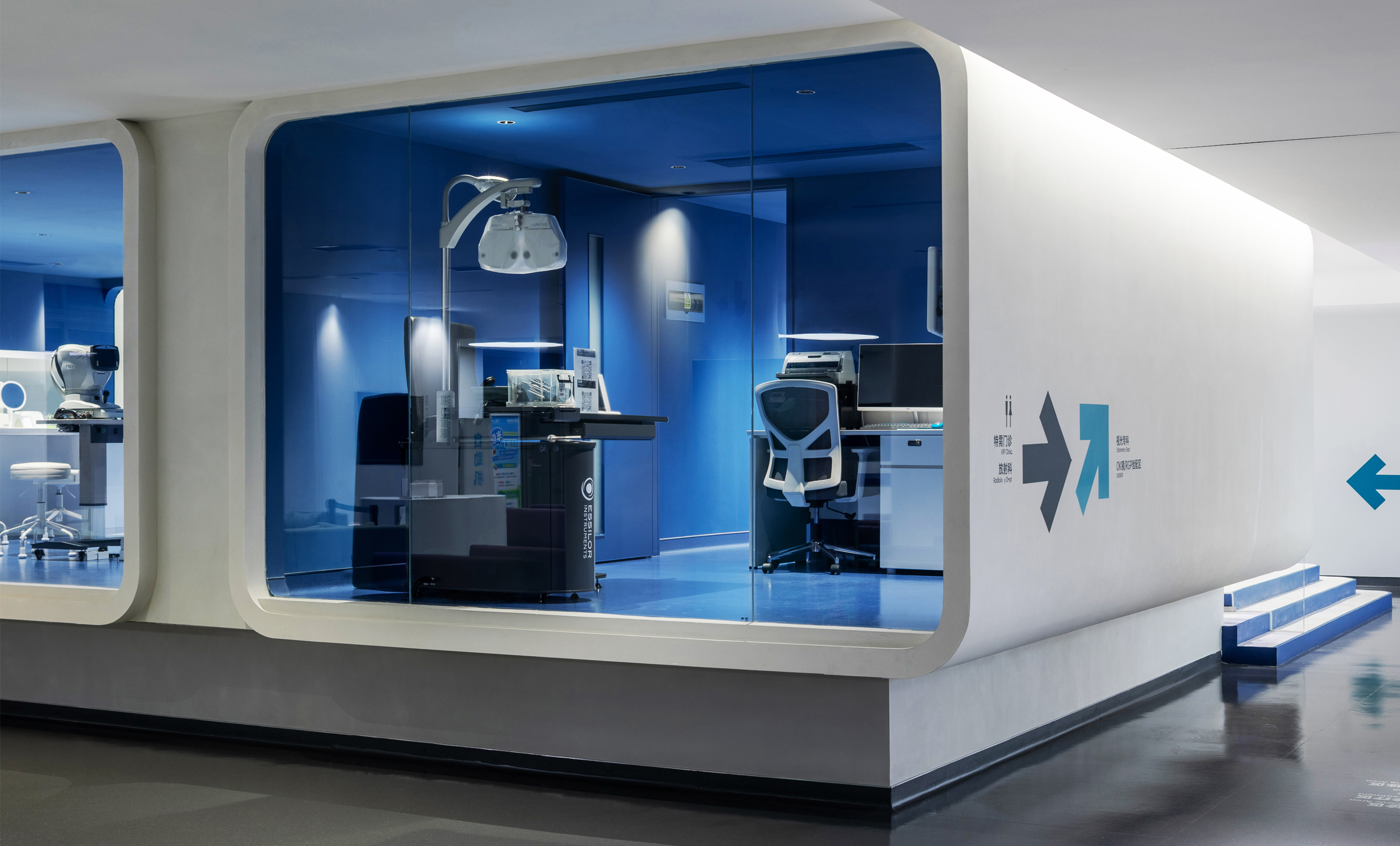 KeHo Eye Hospital is located in Jiahe Xintiandi, Huli District, Xiamen. Originally a semi-enclosed commercial complex, its intricate structure of interwoven floor platforms, staircases, and building volumes posed significant challenges for integrating medical functions.