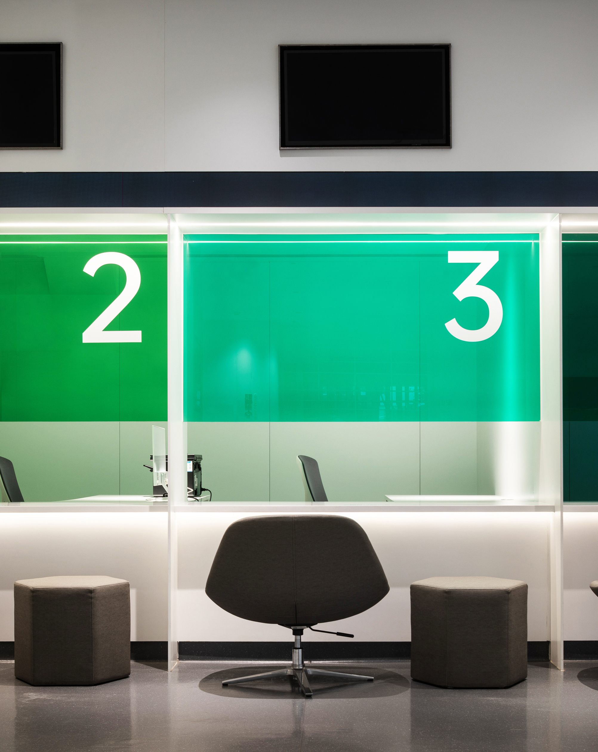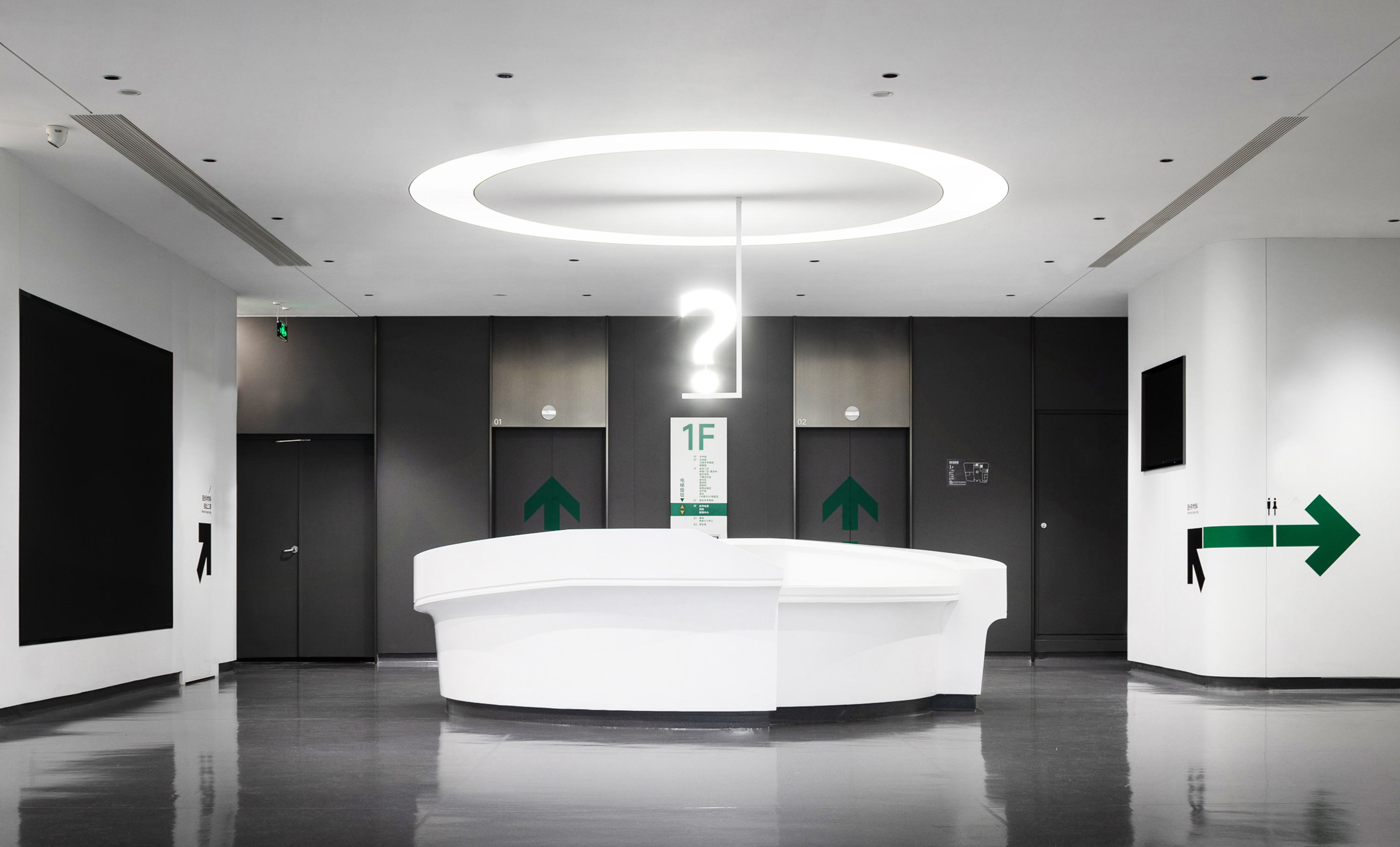 医院覆盖一至五层,我们以患者为中心,结合医院与商场、地铁公共交通的一体化布局,通过清晰的标识架构竖向、水平交通,系统规划急诊、门诊、手术、住院等不同需求动线。